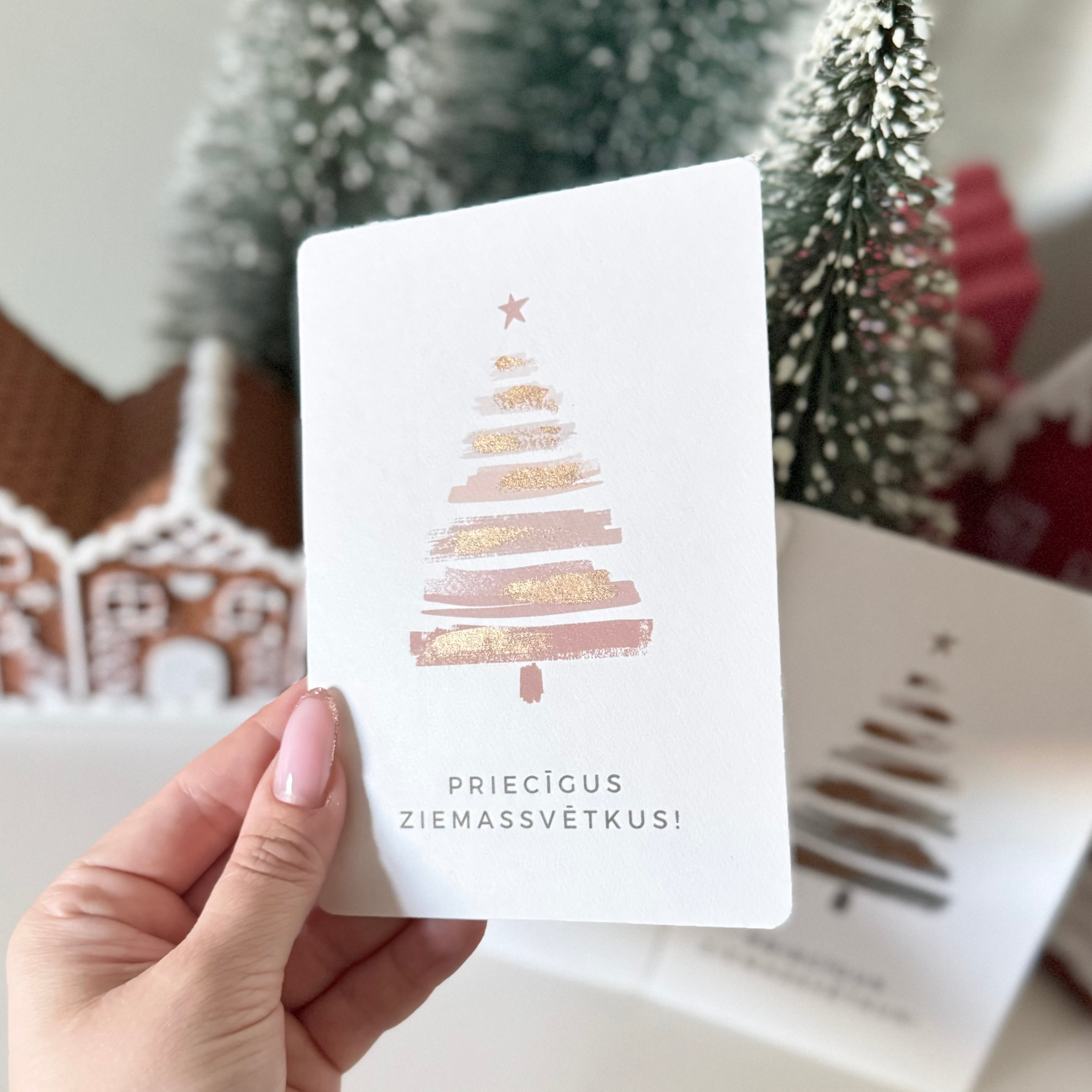 Kartiņa lieliski iederēsies pie ziemassvētku dāvanas. Pievieno to klāt pie dāvanas. Kartiņas otra puse būs lieliska vieta tavam novēlējumam.