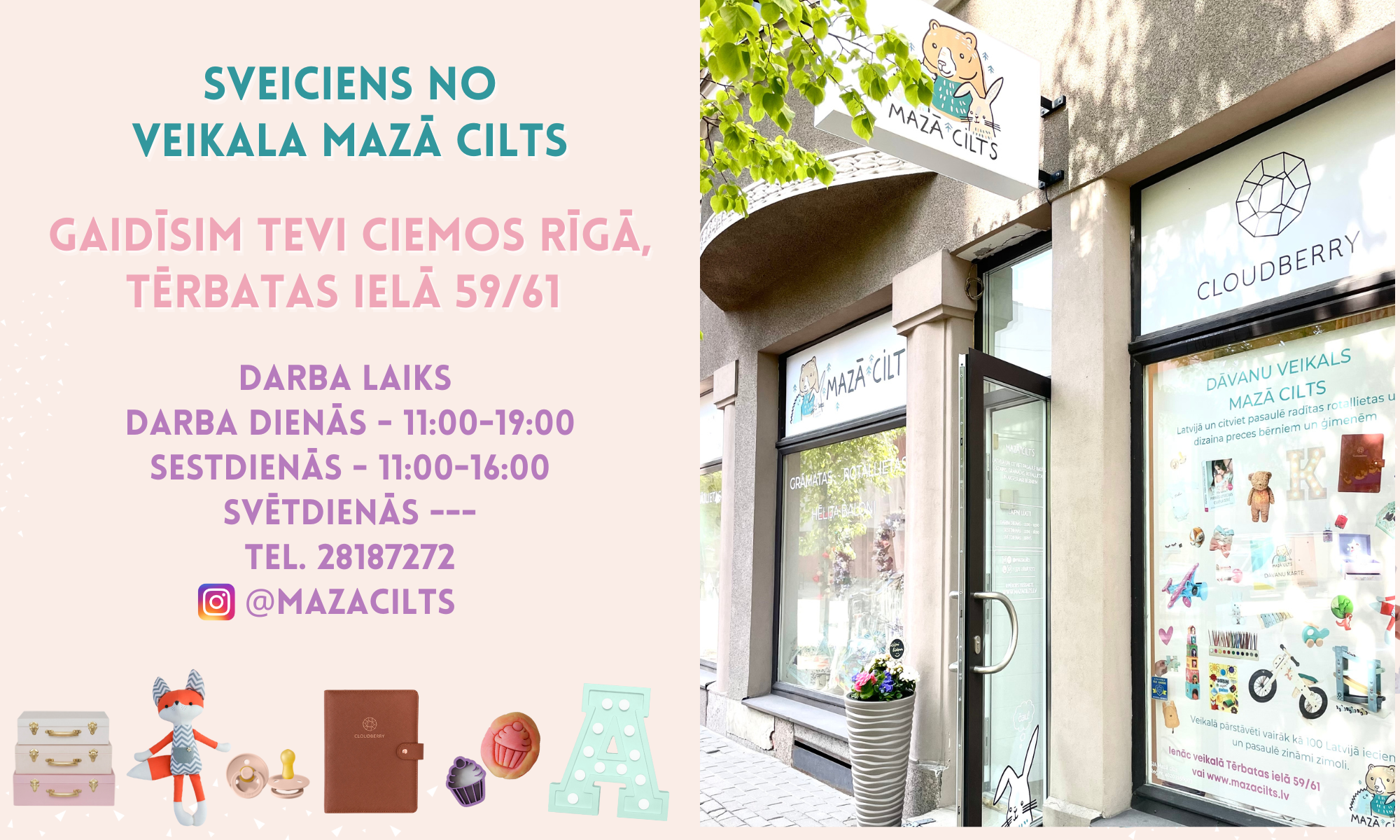 Veikalā pārstāvēti vairāk kā 70 Latvijā iecienīti un pasaulē zināmi zīmoli. Turklāt veikalā MAZĀ CILTS pieejama iemīļoto zīmolu – PIKU un Cloudberry preces visplašākajā klāstā. PIKU – rada gaismas burtus, dizaina mājlietas, izzinošas un attīstošas rotaļlietas, kā arī personalizējamus gaismas dizaina elementus. CLOUDBERRY – rada dizaina papīrlietas, sajūtu un atmiņu fotogrāfiju albumus, plānotājus cilvēkiem, kuri vēlas sasniegt vairāk. MAZĀ CILTS Jūs iedvesmos skaistai ikdienai un krāšņiem svētkiem, izlolotām un īpašām dāvanām un pārdomātām rotaļlietām bērna attīstībai Dāvanu veikalu MAZĀ CILTS meklējiet Tērbatas ielā 59/61, Rīgā.